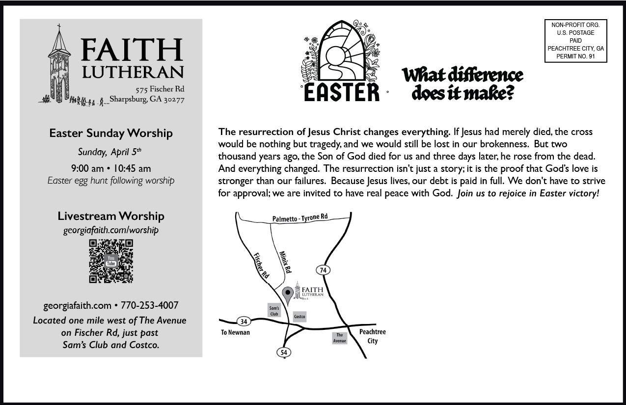 Use these postcards to reach your community and invite them to Easter events. The E26 postcard is accompanied by a host of resources through WELS Congregational Services that revolve around the E26 theme. Look for sermon helps, worship planning social media files, videos, and much more that will accompany these resources through the WELS Congregational Services Foundation resources.